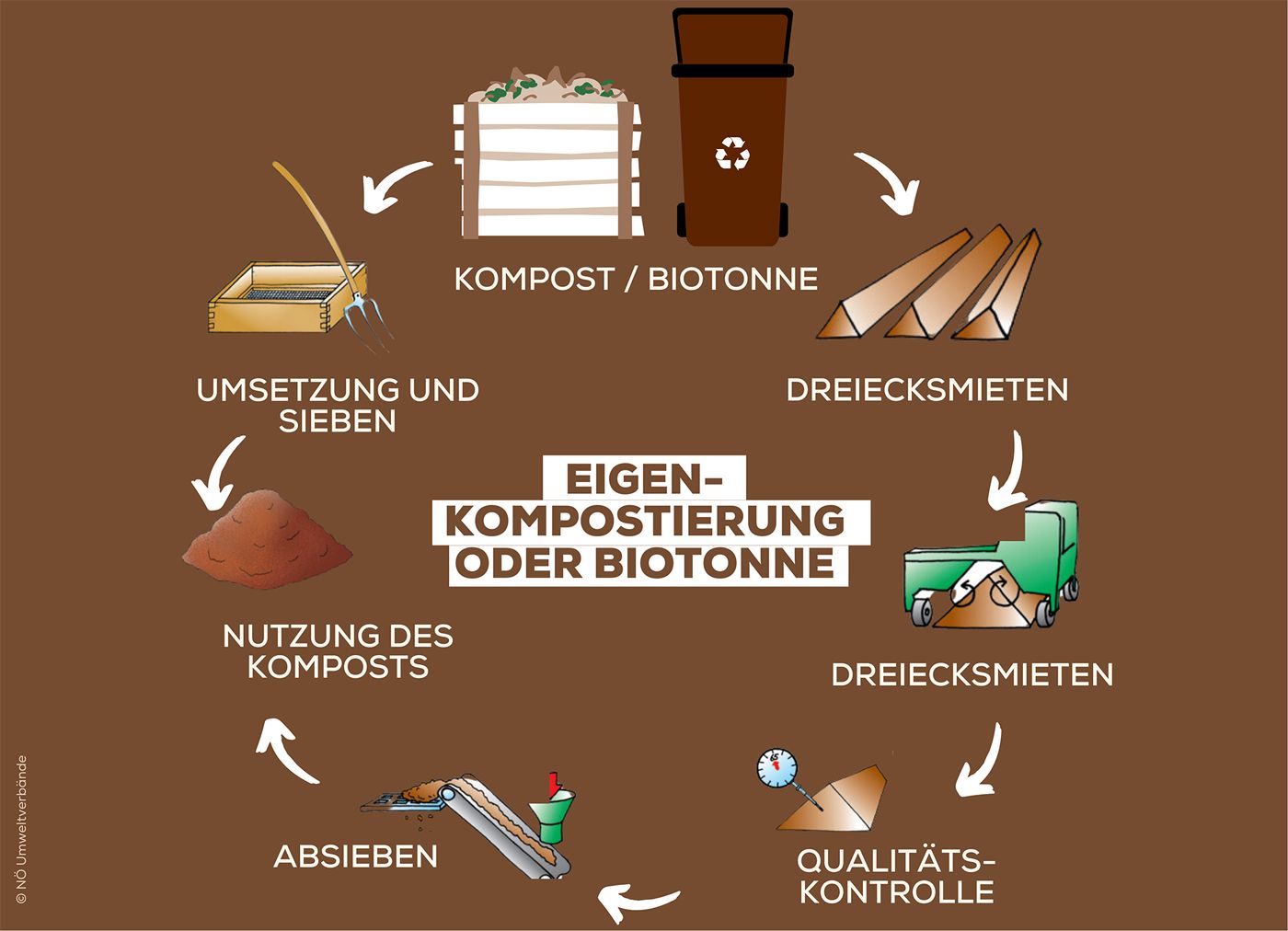 Die Sammlung von organischem Material über die Biotonne ermöglicht die Herstellung von Qualitätskompost und stellt damit ein wundbares Beispiel für Kreislaufwirtschaft dar. Aus Küchenabfällen, Strauch- und Grünschnitt entsteht wertvoller Humus, welcher eine entscheidende Rolle als Nährboden für die Natur- und Pflanzenwelt spielt.